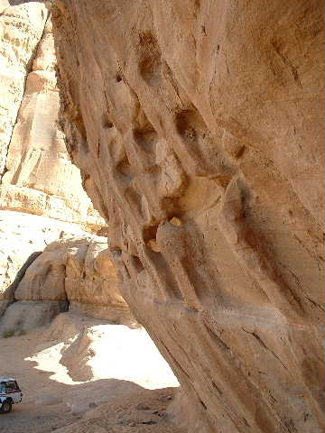 On the side of the bridge insects have built, from sandstone powder, their nests. They are configured in a honeycomb structure. The nest can be seen in the middle, upper half of the picture