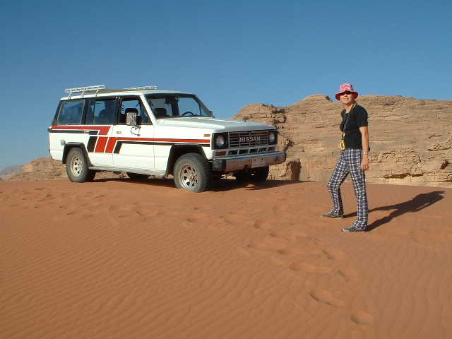 The Four-wheel drive ploughed slowly through the sand. Birgitt stands here with the Nissan, who carried us safely to our destination