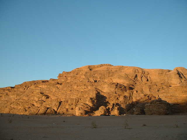 We had a nice traditional meal of the Bedouins, followed by entertainment, dancing. The sun set slowly and we decided to see the sunset. At the foot of the mountain the Bedouin camp can be seen.